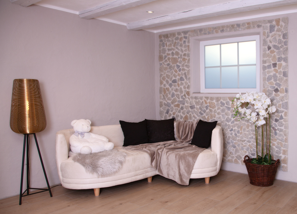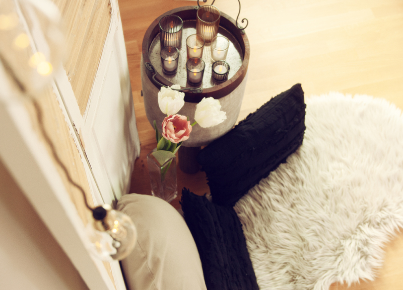 Meine Familie und ich waren sehr fleißig, damit der Stadel möglichst schnell fertig wurde. Den fleckigen Boden haben wir mit einer grauen Farbe gestrichen, die Nischen wurden in unterschiedlichen Stilrichtungen tapeziert und dekoriert. Ein Deckenschienensystem für meine Lampen wurde aufgehängt und der kleine Ofen fand auch seinen Platz. Dieser dient in der Adventszeit als Hintergrund und Requisit für meine "Weihnachtsbäckerei".